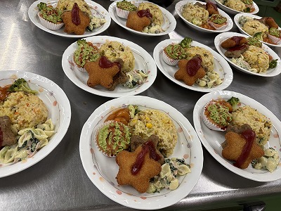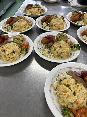 調理員さんたち、朝から仕込み大変でしたが喜んで食べてもらえると嬉しいですね。