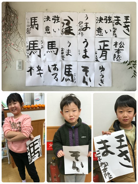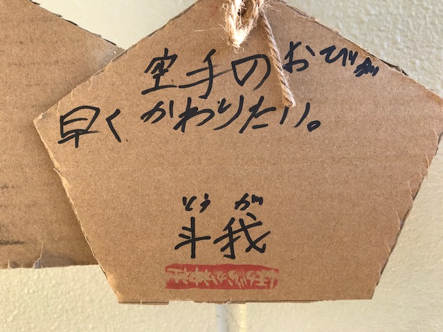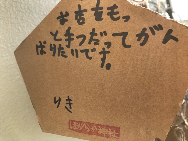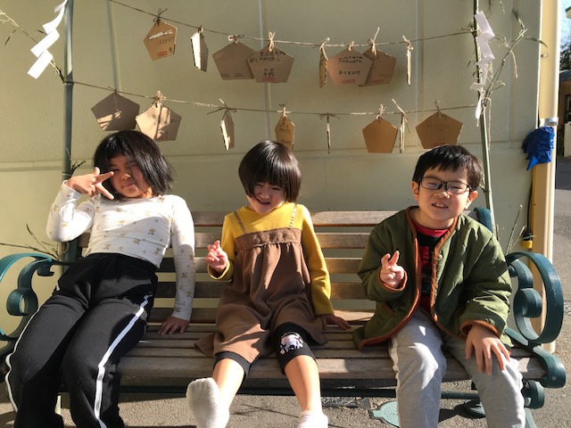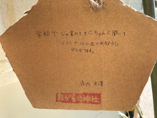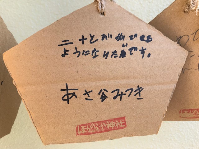 ほがらか神社にて新年の願い事を書きました。頑張ってみようね。