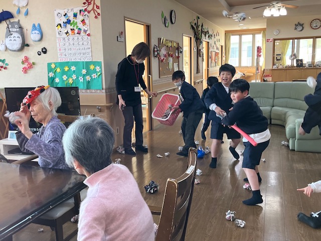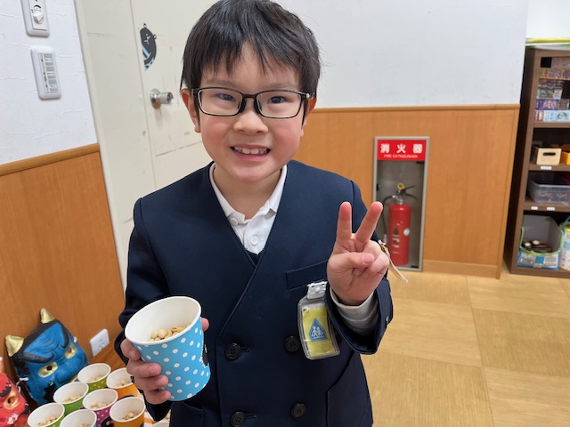 ” 手加減するんよー ” と子どもたちにお願いしていたのですが、思いっきり豆をなげていました💦おばあちゃん達大丈夫でしたか?豆が当たりませんでしたか?