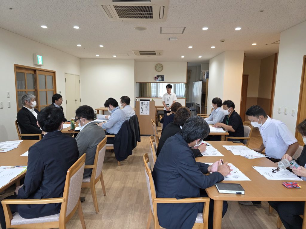 我々元気の会の「ほがらか児童クラブ」と特別養護老人ホームが併設している施設は県内唯一だそうです。施設の見学をしてもらい、理事長から併設についての経緯を語っていただきました。