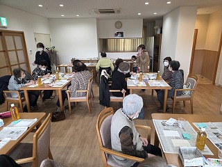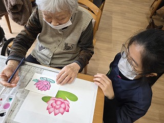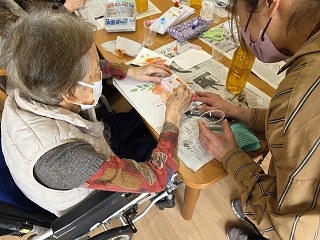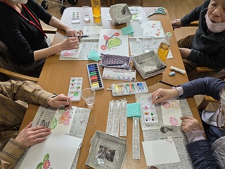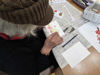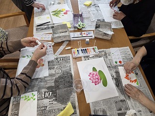 絵を描くことが初めての方も多く、最初は戸惑いながらも奮闘されていました。苦戦しながらも、皆さんとたくさんお話しでき、和やかな雰囲気の中で楽しい時間を過ごすことができました。